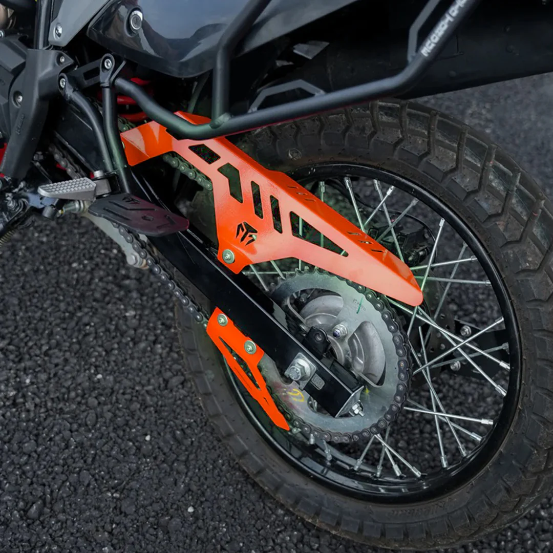Robust Impact Protection designed to shield not only the chain and rear sprocket but also prevent debris and stones from flinging up during off-road rides protecting both the bike and rider.